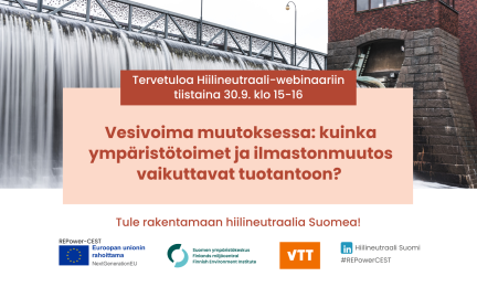 Hiilineutraali-webinaari: Vesivoima muutoksessa: kuinka ympäristötoimet ja ilmastonmuutos vaikuttavat tuotantoon? ti 30.9.